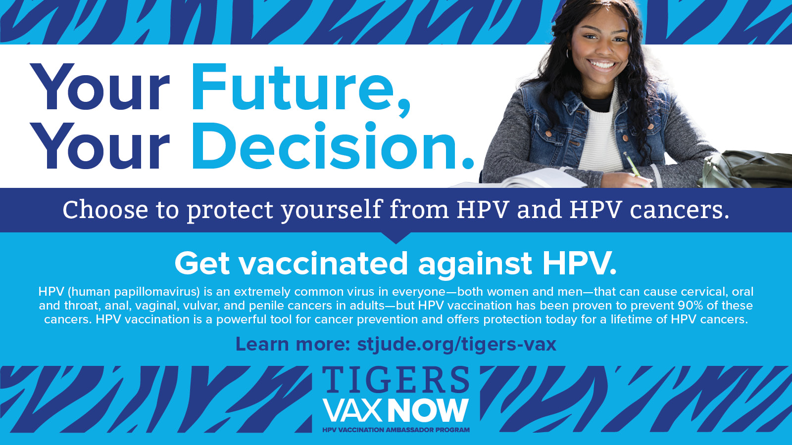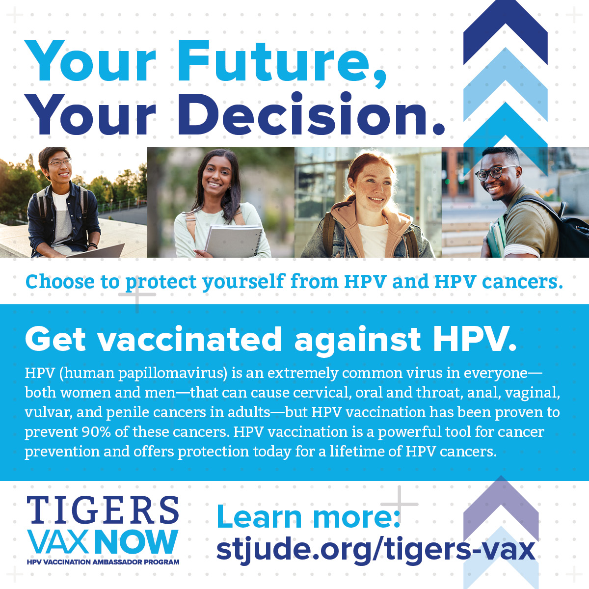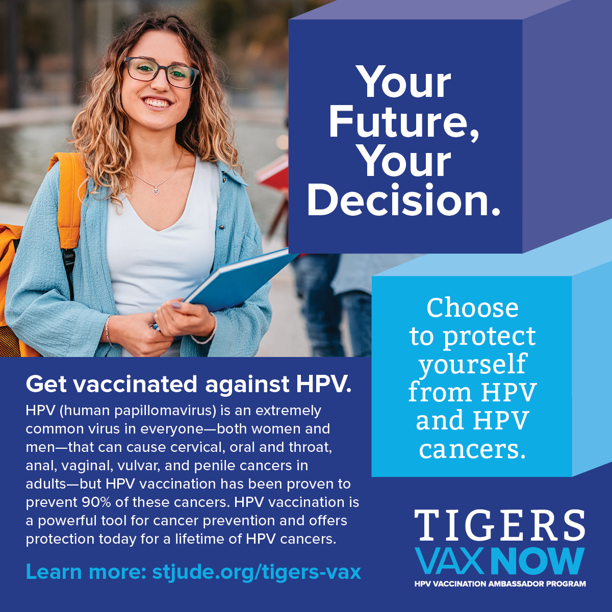 Encourage your fellow classmates to get vaccinated against HPV and HPV cancers by sharing the messages and images below on social media channels such as Facebook, Twitter, Instagram, and LinkedIn.