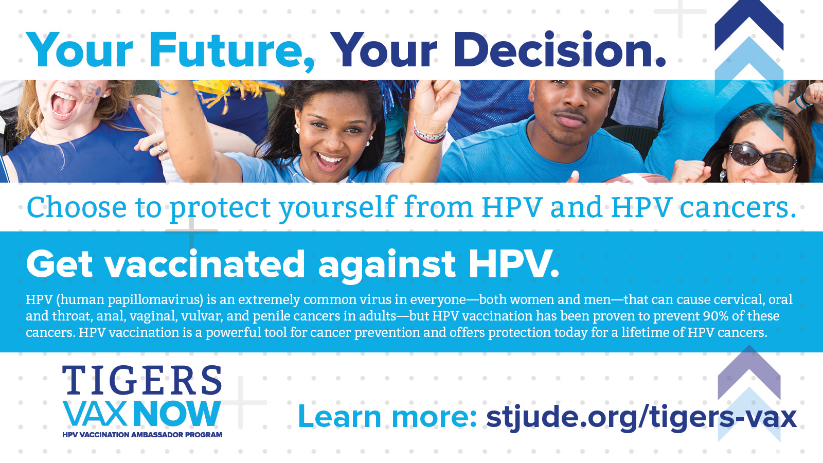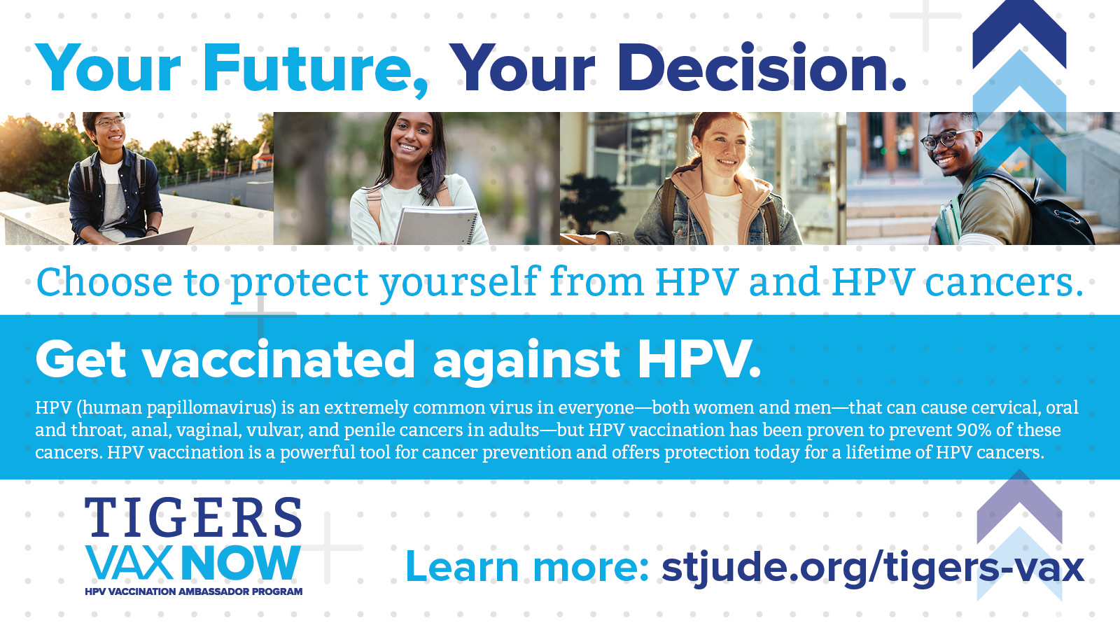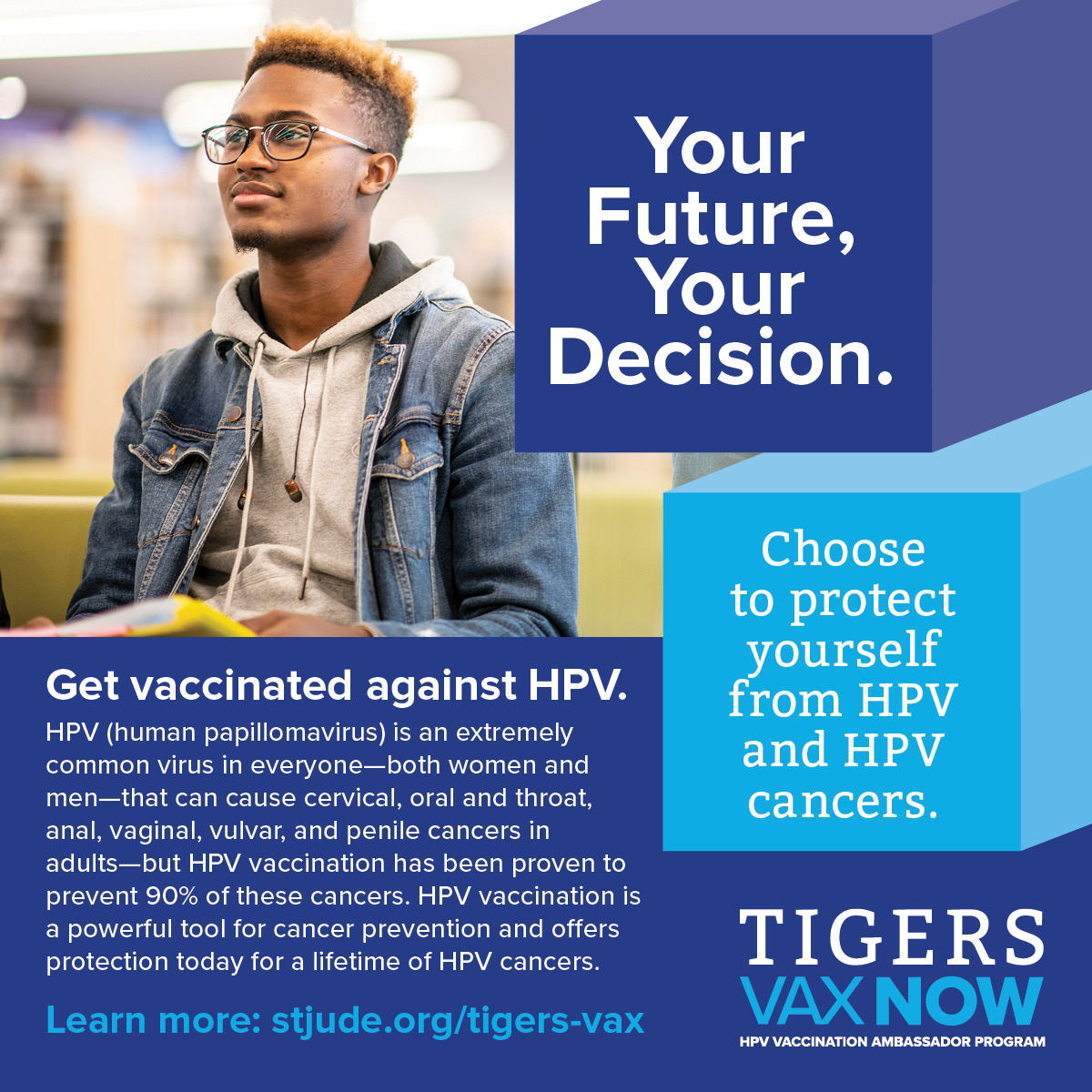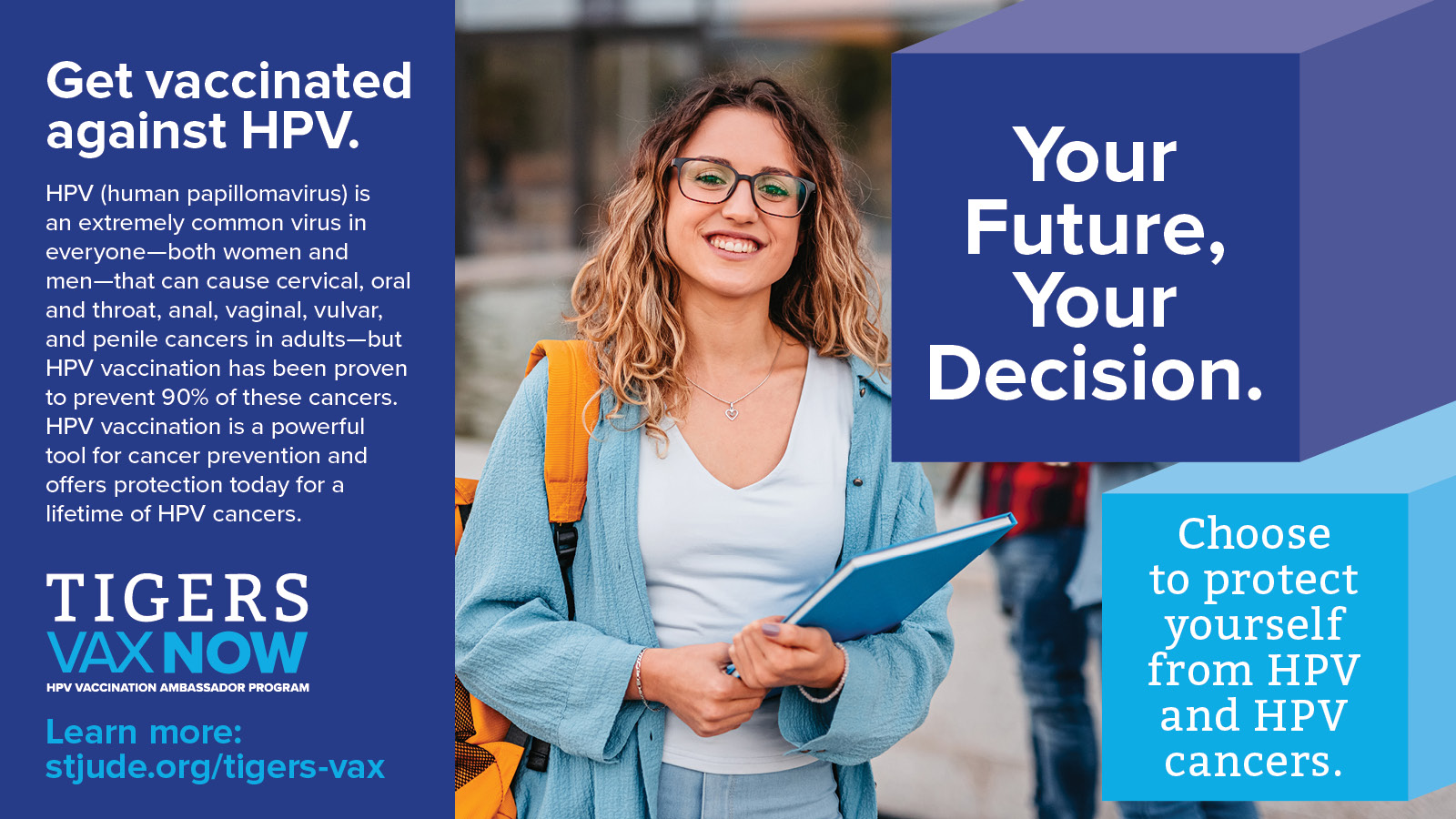 Encourage your fellow classmates to get vaccinated against HPV and HPV cancers by sharing the messages and images below on social media channels such as Facebook, Twitter, Instagram, and LinkedIn.