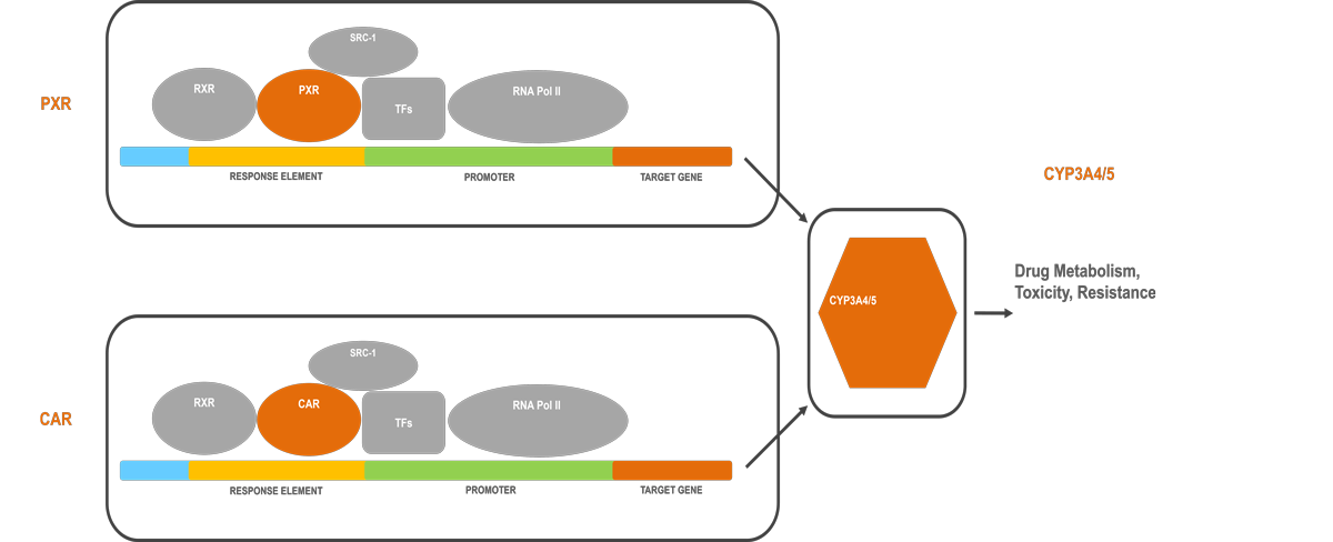 In so doing, we have developed two strategies to prevent PXR activation with a concrete structural activity relationship. We also established that PXR and CAR form an unexpected heterodimer, and we discovered the first CYP3A5-selective inhibitor and unraveled its structural basis. These achievements lay a solid foundation for designing new therapeutic strategies to overcome drug toxicity and resistance.