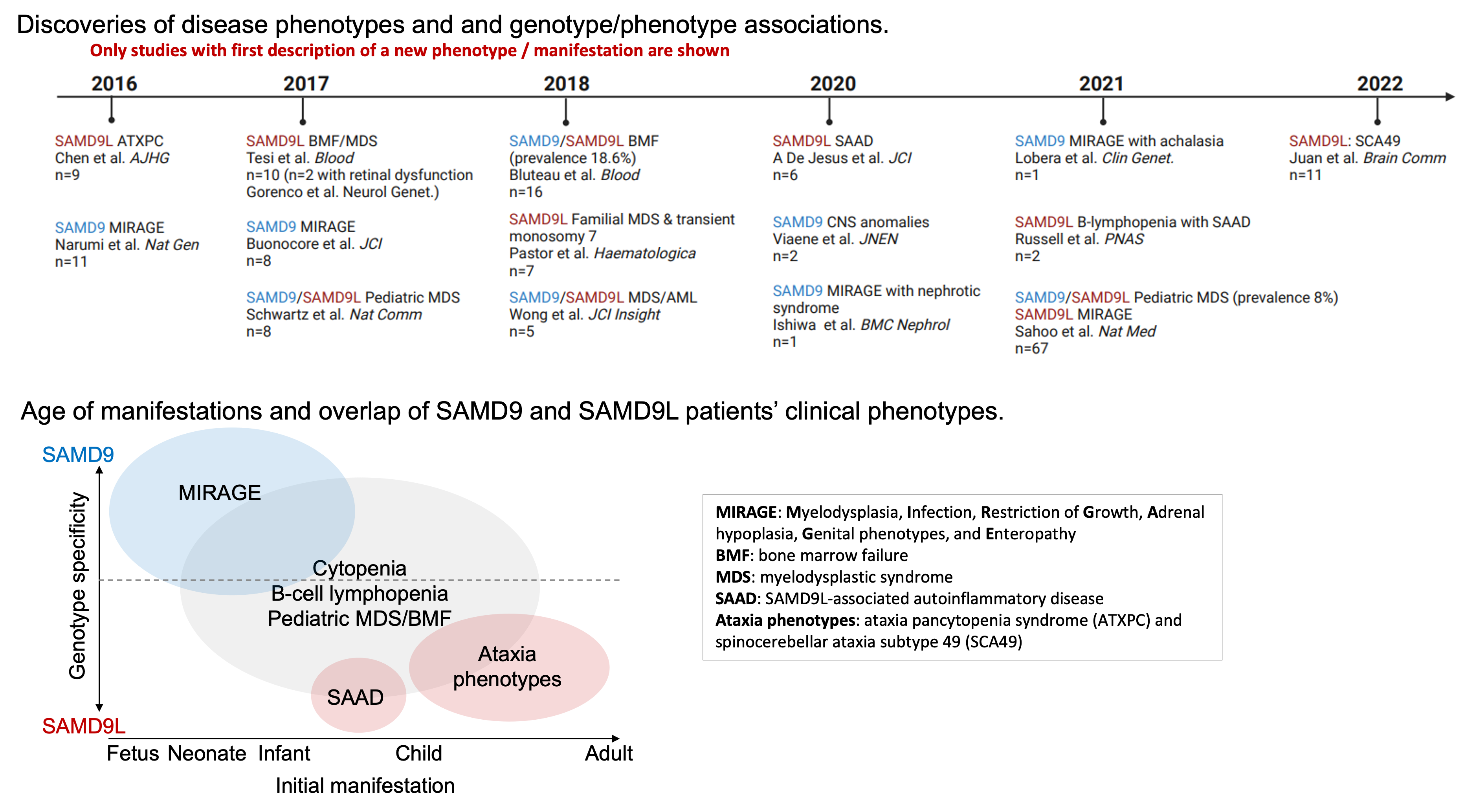 Sahoo SS, Erlacher M, Wlodarski MW. Genetic and Clinical Spectrum of SAMD9 and SAMD9L Syndromes: from Variant Interpretation to Patient Management. Blood. 2024 Oct 30:blood.2022017717. doi: 10.1182/blood.2022017717. Epub ahead of print. PMID: 39475954.